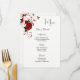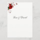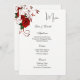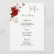 This Menu Card template is shown on basic paper in white with a lovely red rose print design. Script and standard text in black.