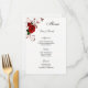 This Menu Card template is shown on basic paper in white with a lovely red rose print design. Script and standard text in black.