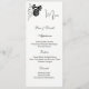 This Menu Card template is shown on the basic paper in white with a lovely black rose print design. Script and standard text in a black colour.