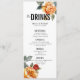 Flipping to the reverse side, the enchanting artwork of vibrant orange roses from the "Marble Dreams: Orange Rose Elegance Collection" continues, creating a seamless presentation. At the top of the card, against this backdrop of elegant blooms, the caption "Drinks" is displayed, followed by a lovely customisable message inviting guests to enjoy the celebration and the thoughtfully selected beverages. Below this heartfelt message, a selection of drinks is presented, ranging from signature cocktails to fine wines and refreshing non-alcoholic options. Each drink is described with care, ensuring that guests can make their selections with ease and anticipation. The couple's names are elegantly displayed once more, adding a personal and warm touch to the card.