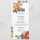 Introducing the slim menu card from the "Marble Dreams: Orange Rose Elegance Collection," a vibrant and elegant addition to your wedding reception.
