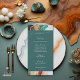 Wedding menu | Vibrant alcohol ink art in dark teal, sea green, and terracotta, perfect for a stylish wedding invite. Abstract design blends elegant dark tones with refreshing greens and warm terracotta, creating a modern and eye-catching visual.