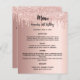 Menu program rose gold birthday party