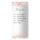 Personalise and add your names, the wedding date, the menu and evening program. A faux silver looking background, with rose gold confetti. Black text.