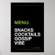 Brighten up your kitchen with humor! “MENU: SNACKS, COCKTAILS, GOSSIP & VIBES” poster in modern typography. Available in multiple color backgrounds, perfect as home decor, gifts, or kitchen wall art.