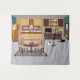 Add a touch of feline charm to your wall with our Meow-nificent Kitchen Tapestry. This captivating tapestry features a colourful cartoon depiction of a kitchen, adorned with dishes, appliances, and a table brimming with delicious fruits. The tapestry also showcases two adorable kittens, one happily eating from its dish while the other curiously peeks out from the kitchen door. With its unique and adorable design, this tapestry is the perfect gift for anyone who loves cats and wants to bring a playful atmosphere to their space.