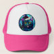 Meowing Stained-Glass Christmas Black Cat Trucker Hat