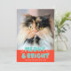 This cute yet modern cat themed holiday photo card features the whimsical greeting "meowy & bright" with a vertical photo. The colours are red, aqua, and white but can be changed to any colours or your choice. It's the perfect design for any cat lover! It works very well with a colour or black and white photo. Tip: On the back, you can add another photo or even add more text. See our collection of pet theme holiday photo cards for more designs!