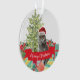 Cute dated British Shorthair cat Christmas ornament with a christmas tree & wrapped gifts with the holiday message "Meowy Christmas" . Visit our shop to view a large assortment of cat breads