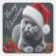Meowy Christmas British Shorthair Santa Cat Square Sticker