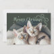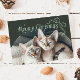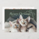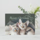 Cute Christmas Cat Photo template card featuring a funny text that says "Meowy Christmas." Add your cat pictures on this green arch frame card. There is an illustration of a bow.