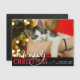 Meowy Christmas Cute Cat Add Your Custom Photo - Holiday Typography With Fun Holiday Pun Quote and Your Photograph. With trendy script text in Bright Red and Grey. A Funny & cute quote for Christmas Pet Lovers, holidays, and the winter season. Fun for the whole family! Just add your custom Photo Magnetic Card.