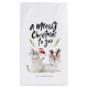 Cute gift bag for Christmas featuring an illustration of two siamese cats wearing a santa hat and antlers. The funny typography text above says "a meowy christmas to you" with winter foliage surrounding it. You can add your name at the bottom.