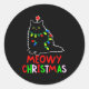Meowy Christmas Xmas Lights Black Cat Pajamas Classic Round Sticker