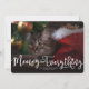 'Meowy Everything' (Merry Everything) in Elegant White Script Calligraphy and a Paw Print Accent Over a Full Bleed Photo, Funny Pet Holiday Card for all Cat Lovers / Cat Owners.