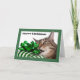Meowy (Merry) Christmas Cute Cat With Present Holiday Card