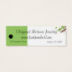 Need some price tags for items in your shop or an upcoming show or event? These modern and funky olive green and red tags will fit the bill! Totally customisable with your business name, website address, and street address. Black circle indicates where you should punch with a hole punch - punch it out and slip a ribbon or string through the end to attach the tags to your merchandise. Hand write your prices where indicated on the front of the tag, or customise the tags with prices already on them here - your choice. Leave the tags on the merchandise and your customer walks out with a mini business card, directing them on how to find you again!