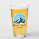 Beer glass from Méribel Meribel France with a gorgeous blue mountain with a sunny background and the option to add text.