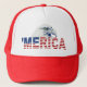 It's the very popular, classic, 'MERICA American Bald Eagle US Flag trucker hat! This best-selling hat features a US flag and American Bald Eagle. A great hat to wear for the 4th of July, Memorial Day, Veteran's Day, or ANY day oft he year. The perfect patriotic gift for the true American!