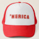 Grab your classic patriotic 'MERICA Trucker hat today, at a great low price! An awesome way to show your love for the USA on Memorial Day, Veteran's Day, at Independence Day cookouts, or on ANY day of the year! **Choose from many different hat colours** Purchase this hat with confidence, from an American Zazzle Pro Seller and designer.