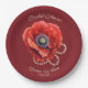 Merlot Red with Giant Red Poppy Bridal Shower Paper Plate