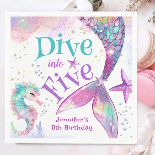 Mermaid 5th Birthday Dive into Five Envelope