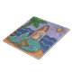 My funky abstract digital painting of a mermaid sitting under a palm tree printed on ceramic tile