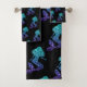 Mermaid aqua blue ombre Sparkles pattern black Bath Towel Set