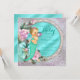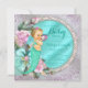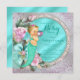 Mermaid baby shower invitation with adorable baby mermaid with diamond tiara and pearl on a beautiful lavender and aqua blue sparkle floral background. this beautiful mermaid baby shower invitation is easily customised for your event by simply adding your details in the font style and colour and wording of your choice. this is a printed design with no real jewels, bows, glitter, etc.