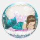 Mermaid baby shower stickers with adorable brunette mermaid wearing a tiara and pearls on a pretty teal blue and purple under the sea background. You can add text to personalise these cute blonde mermaid baby shower stickers.