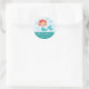 This sweet birthday party sticker is ideal for a Mermaid or Under the Sea themed party. It features a cute Mermaid character and a few bubbles floating around. The scallop border gives the idea of waves. Modern and stylish design great for an adorable birthday party. Add your own wording. Use it for party favours, to decorate or to seal envelopes.