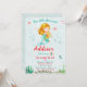 This Mermaid party invitation features little mermaid, seahorse, sea shell with an age and some fish and bubbles around.