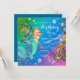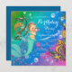 Mermaid birthday party invitation with adorable little mermaid with diamond tiara and pearl on a beautiful green, pink, blue and gold sparkle undersea background. This beautiful mermaid birthday party invitation is easily customised for your event by simply adding your details in the font style and colour and wording of your choice. this is a printed design with no real jewels, bows, glitter, etc.