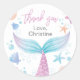 Thank you birthday favour stickers featuring a playful mermaid theme.