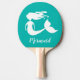 Cute mermaid theme table tennis ping pong paddle for girls. Personalised sports game gift idea for tabletennis. Pretty underwater creature design personalised with kids name, quote or monogram letters. Customisable turquoise blue background colour. Make one for your grandchild, granddaughter, daughter, cousin, sister, friend etc. Unique Birthday party presents for children. Fairytale animal with fish tail.