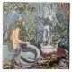 This is a digitally enhanced print of a vintage 1937 The Little Mermaid illustration by Ivan Bilibin and features a mermaid under the sea with fish, crab, lobster and a statue.