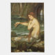 A Mermaid (1901) by JW Waterhouse is a vintage Victorian Era Pre-Raphaelite fine art portrait painting. A mermaid is brushing her hair on the beach by the seashore. A mermaid is a mythological aquatic creature that is half human and half fish.