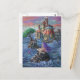 If you love mermaids, then this painting is for you. Mermaid Castle painted by Traci Van Wagoner features a mermaid with purple hair in front and a mermaid with green hair sunning herself on rock islands while another mermaid with pink hair swims in the ocean in front of a castle with a purple, orange and yellow sunset sky behind. This beautiful and whimsical fantasy art makes a great gift and a stunning decoration for your office or home.
