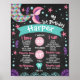 This girls 1st birthday milestone poster is in the chalkboard style. It features a mermaid tail, some bubbles, a banner, sea horses, starfish, seaweed and shells. Same design is also available without the chalkboard background. This girl's birthday mermaid milestone poster is ready to personalize and is suitable for a range of ages.