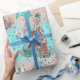 Mermaid Christmas | Stockings and Trees Teal Peach Wrapping Paper