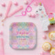 Mermaid colorful iridescent birthday custom square paper plate