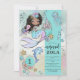 Little girls love magical things. This magical under the sea mermaid and dolphin 1st birthday party invitation will delight guests with a whimsical flair, featuring mermaid, dolphin, tortoise, and sea shells, in pretty colours of pink, blue green and pale purple. An underwater world of magic and mystery.