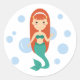 Cute cartoon redhair mermaid waving underwater among bubbles.