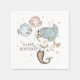 Cute mermaid pink and blue happy birthday napkins for child's your party. Illustrated mermaid with fish.