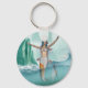 3D digital render of a cute mermaid in an ocean on a magic castle background