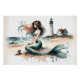 Mermaid Lighthouse Coastal Watercolor Scene Poster