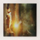 Mermaid sleeping on the sand under a crescent moon and stars. Hues of gold, green, blue and amber. Very elegant.