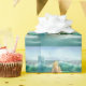 In this fanciful design, a mermaid sits on a sandy beach as aqua waves roll upon the shore. For those who love mermaids and fantasy art, this is a colourful and lovely image.