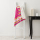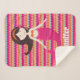 This adorable mermaid throw features a multi-coloured shell striped pattern in orange, fuchsia, light pink, and aqua with a brunette mermaid with an orange top and hot pink tail with orange headband. The sherpa throw is also personalised with a name that can be removed or changed to say whatever you want.