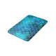 A fluffy bath mat featuring a digitally created mermaid scallop pattern layered over top of a blue and green galaxy background. Perfect for a girls bathroom who loves mermaids!